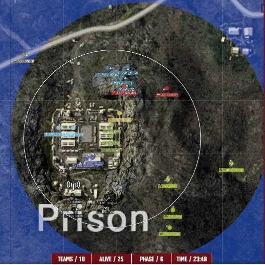 阶段6,圈型刷到监狱山头附近,PeRo选择进攻JDG山头,PeRo将JDG淘汰出局。阶段7,圈型刷到监狱内部。随后PeRo继续往山顶推进,JRG被EDG和PeRo合力淘汰。PeRo枪法再次发挥,再将EDG淘汰出局。阶段8,PeRo无路可去先被淘汰。
